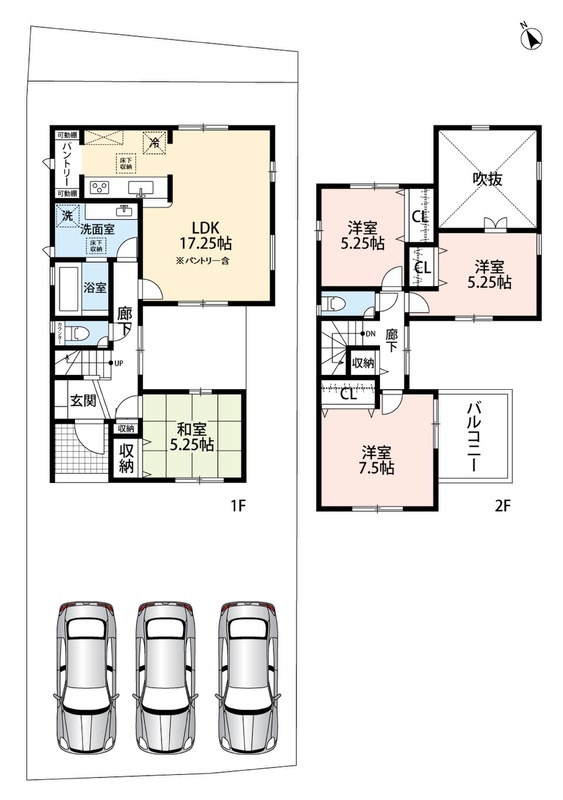| 駐車場 | 3台 | 道路の幅員 | 南側4m |