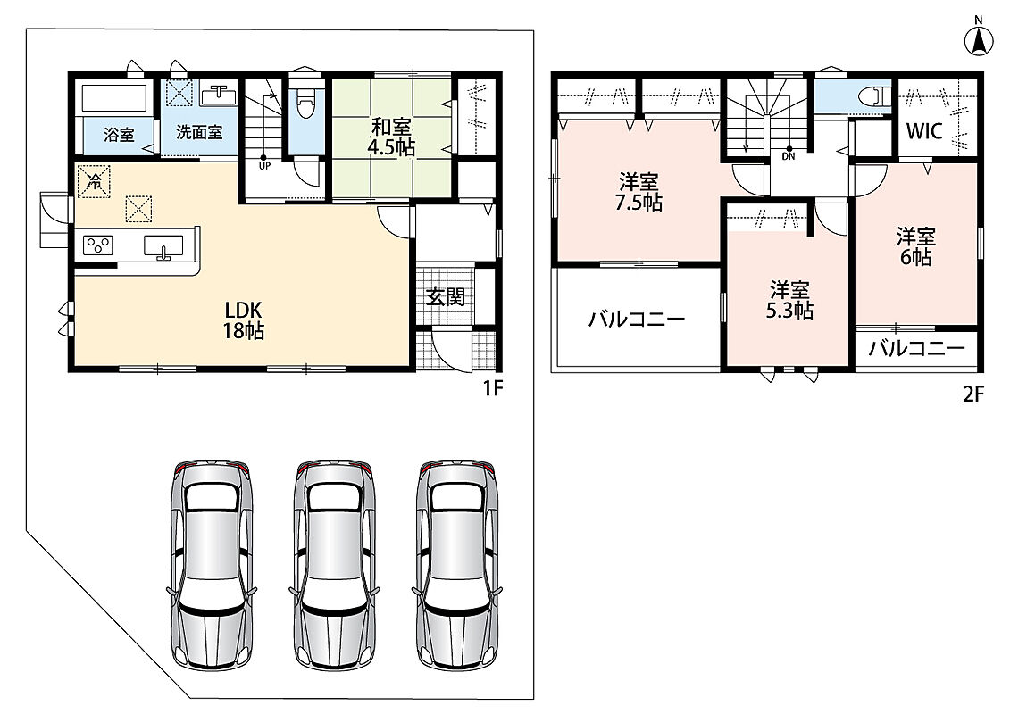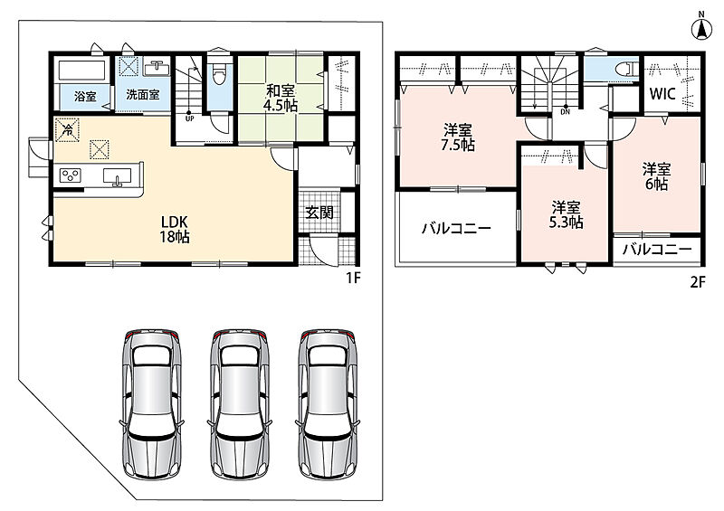 1号地 間取り 4LDK 価格 3090万円 建物面積 101.25m2 土地面積 143.56m2 -