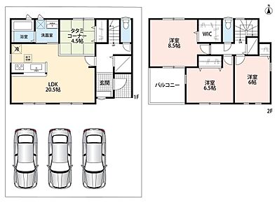 FIRST TOWN 一宮市今伊勢町馬寄 第8期 全5邸 間取り 3LDK~4LDK 価格 2590万円 建物面積 98.63m2~101.31m2 土地面積 143.54m2~211.44m2 -
