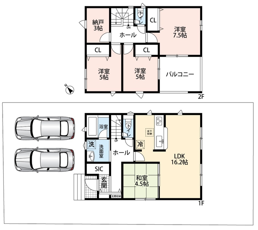 | 駐車場 | 2台 | 道路の幅員 | 北西側5.8m |