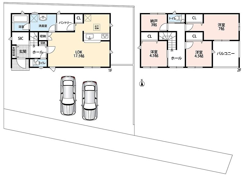 | 駐車場 | 2台 | 道路の幅員 | 南東側4.4m~4.5m |