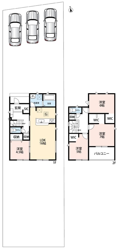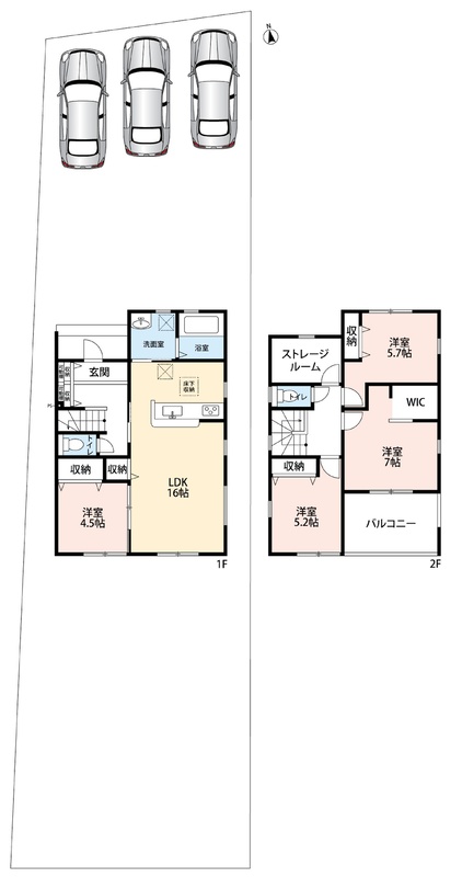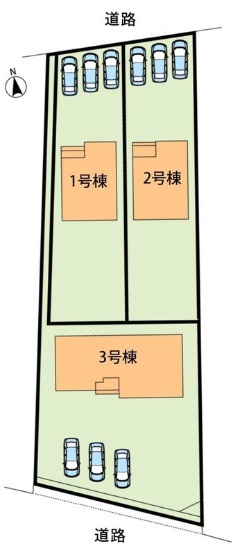 | 駐車場 | 3台 | 道路の幅員 | 北側5.1m、南側1.8m |