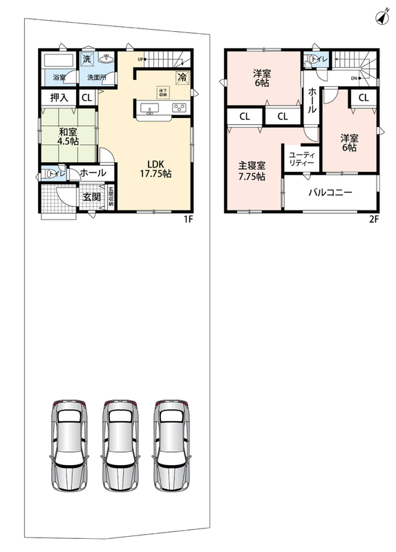 | 駐車場 | 2台 ~ 3台 | 道路の幅員 | 南東側4m |