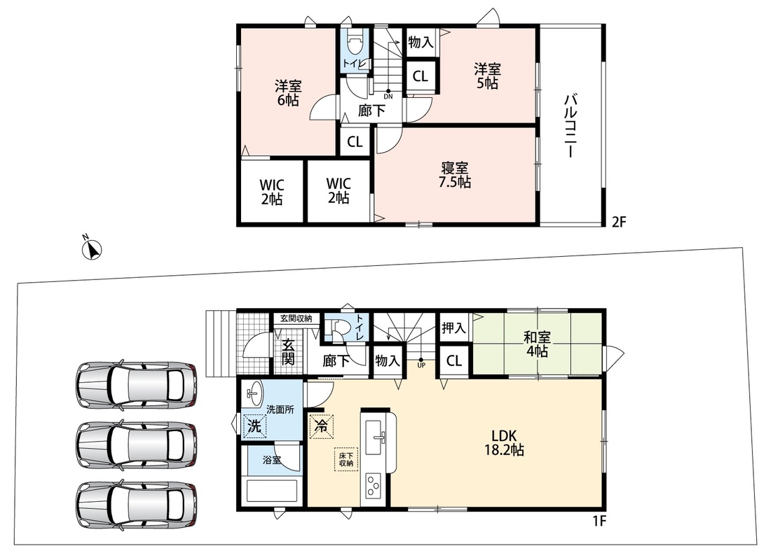 ・ゆとりのある敷地で並列駐車3台可能!