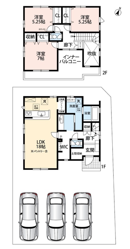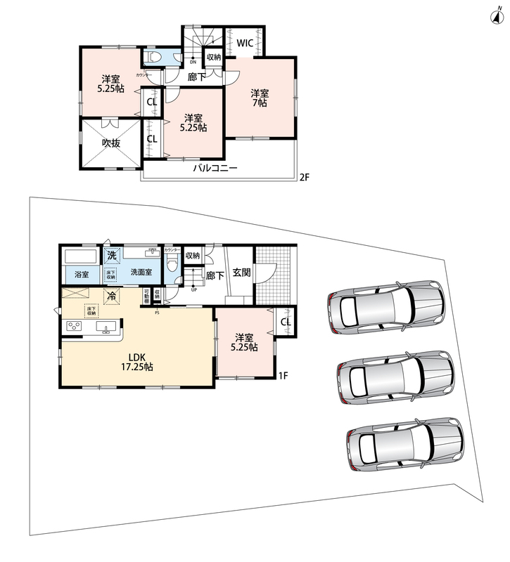1号地 / 4LDK / 101.62m2 / 292.54m2 / 2880万円