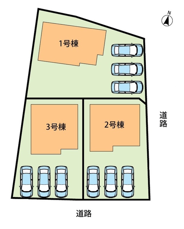 駐車場 3台 道路の幅員 東側2.4m、南側3.6m