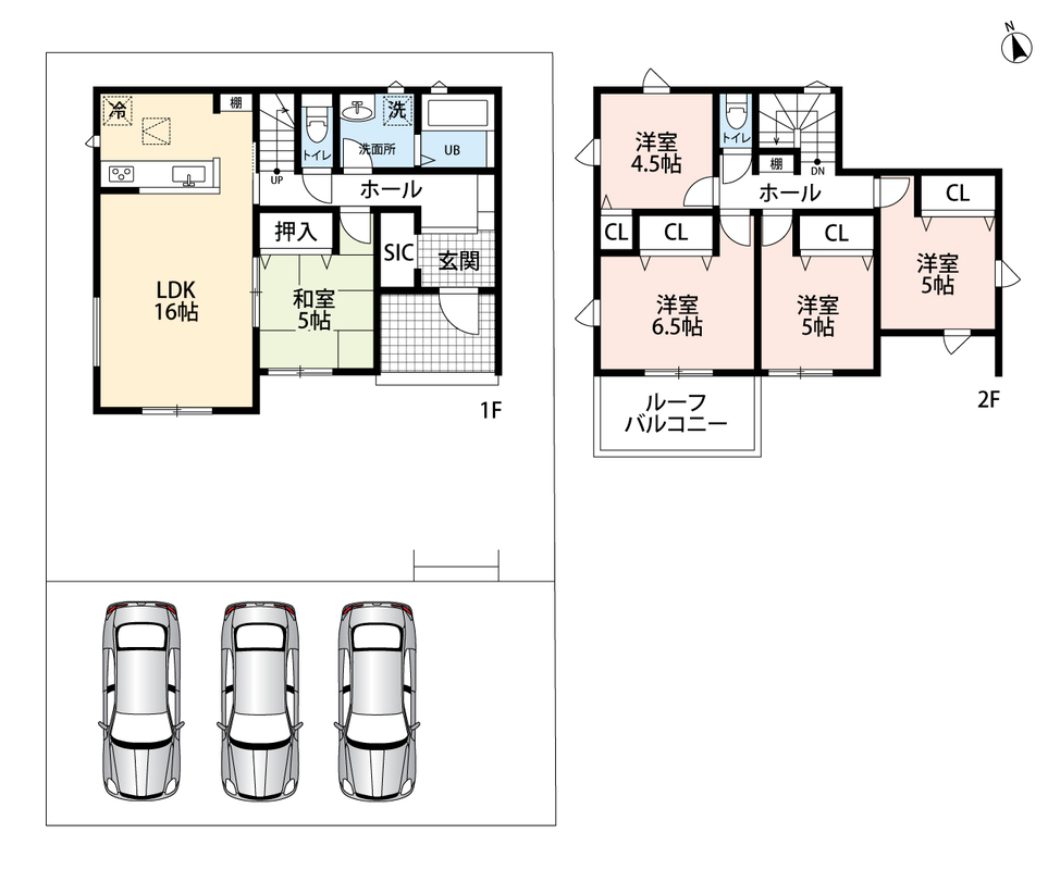 ・ゆとりのある敷地で並列駐車3台可能!