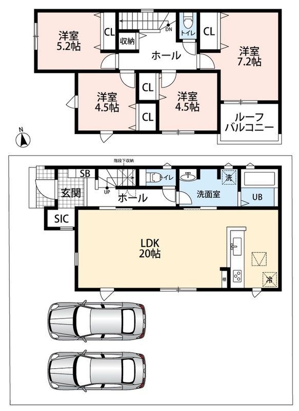 2号地 間取り 4LDK 価格 2290万円 建物面積 107.23m2 土地面積 153.58m2 -