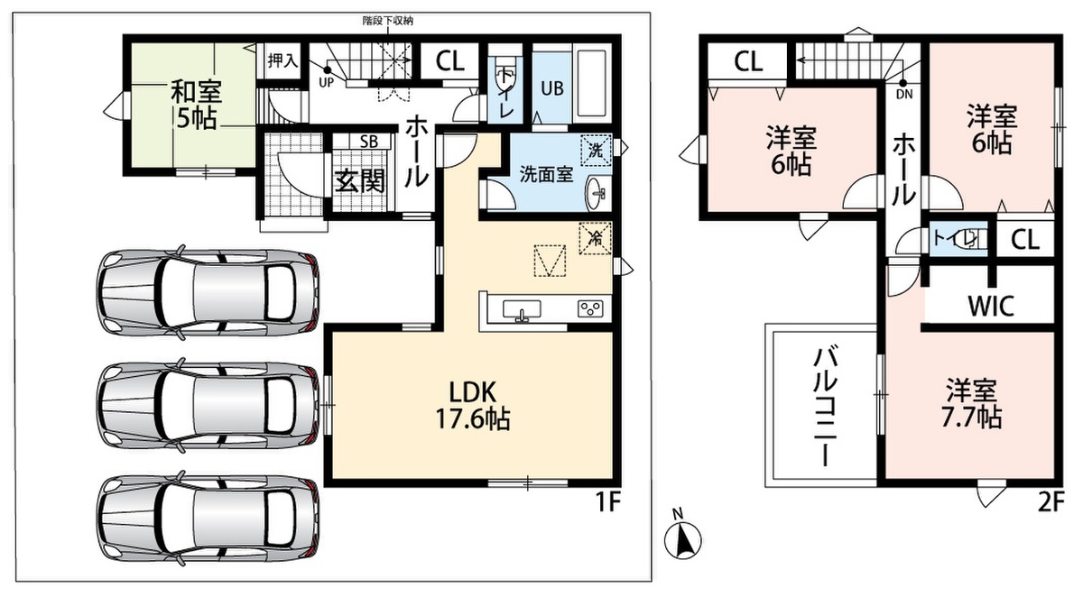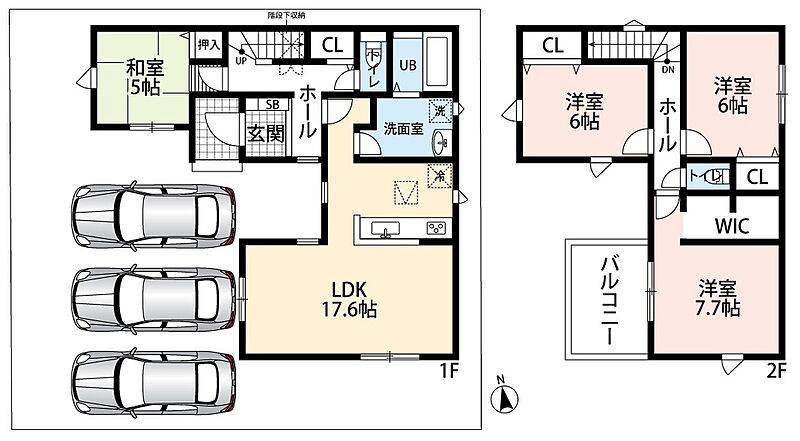 5号地 間取り 3LDK 価格 2490万円 建物面積 95.23m2 土地面積 169.58m2