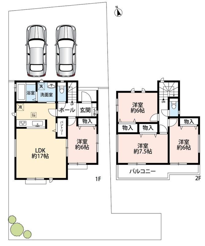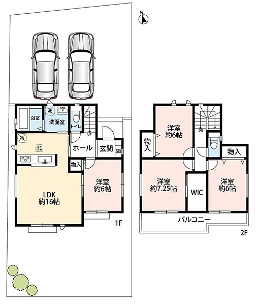 ・ゆとりのある敷地で並列駐車2台可能!