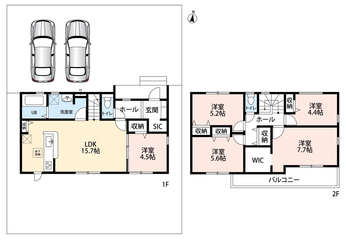 | 駐車場 | 2台 | 道路の幅員 | 北側7.5m |