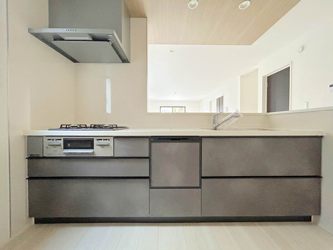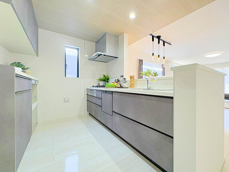 ◆ 食洗器搭載のシステムキッチンを採用!カウンターキッチン設計で部屋全体を見渡すことが可能な開放的なプラン。