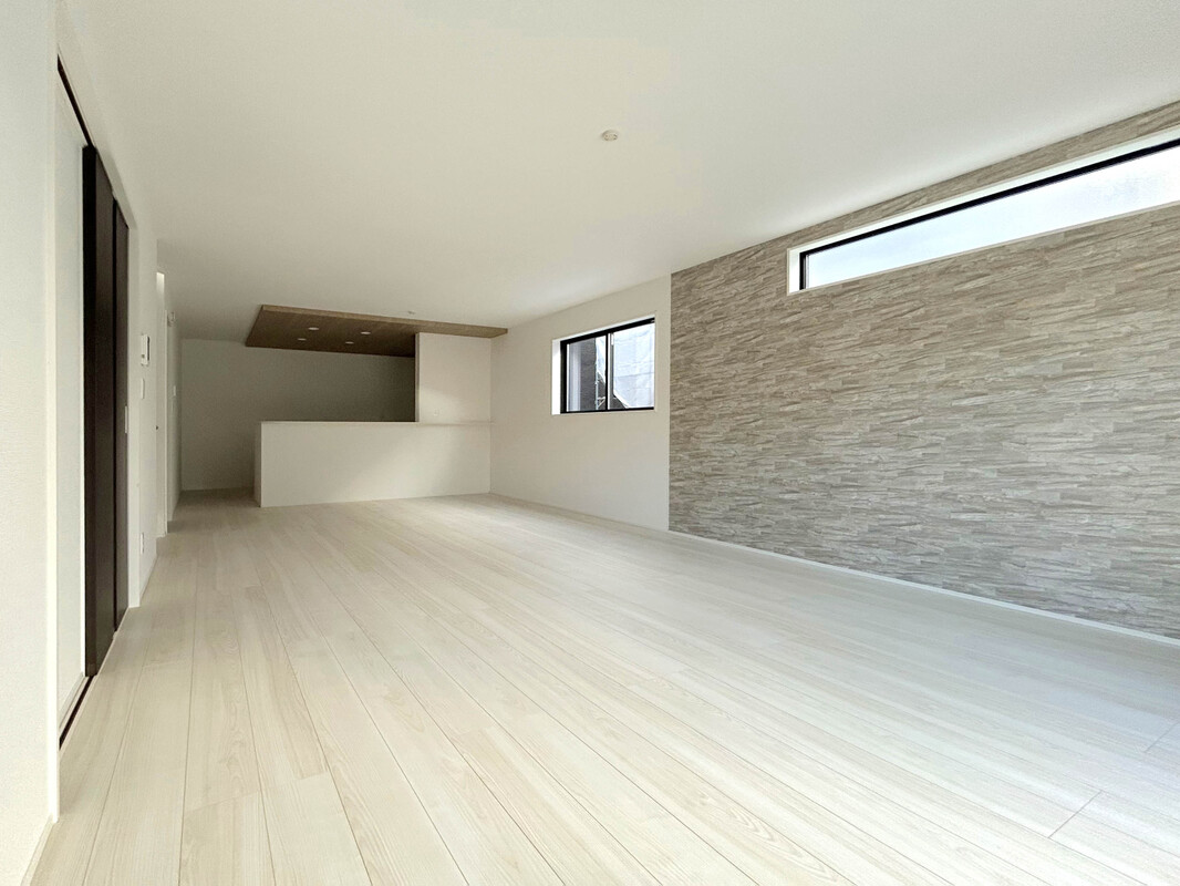 【見学予約受付中】全棟異なるこだわりプランでライフスタイルに合わせて選べる分譲地。落ち着いた色調のアクセントクロスはデザイン性だけでなく、空間の広がりも感じられる自然光に包まれた室内設計。
