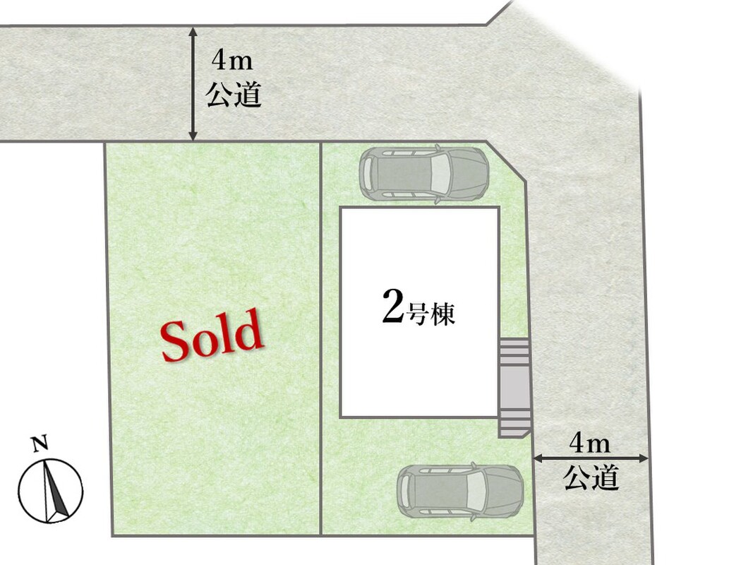 | 駐車場 | 1台 ~ 2台 | 道路の幅員 | 幅員:北側4m(公道)、東側4m(公道) |