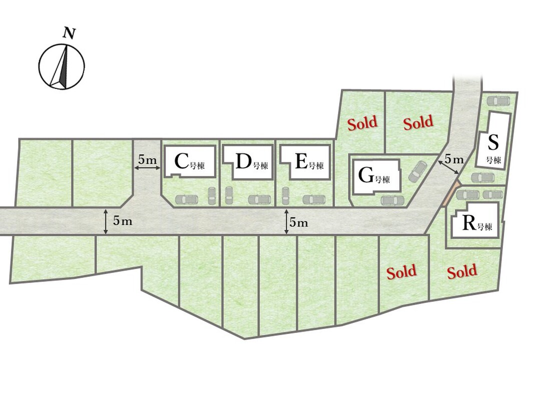 | 駐車場 | 1台 ~ 2台 | 道路の幅員 | 分譲地内:5m(公道) |