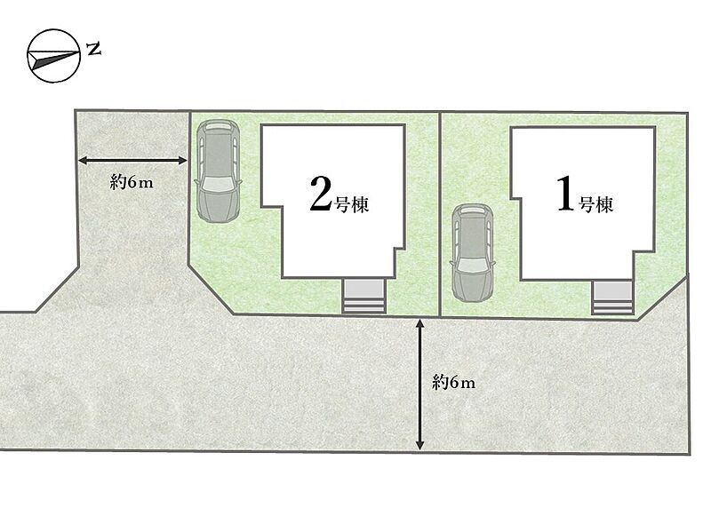 ◆ 開放的な6m道路に面した敷地間口11m超!各棟敷地30坪のゆとりある住まい!カースペース付きの3LDKファミリープラン。