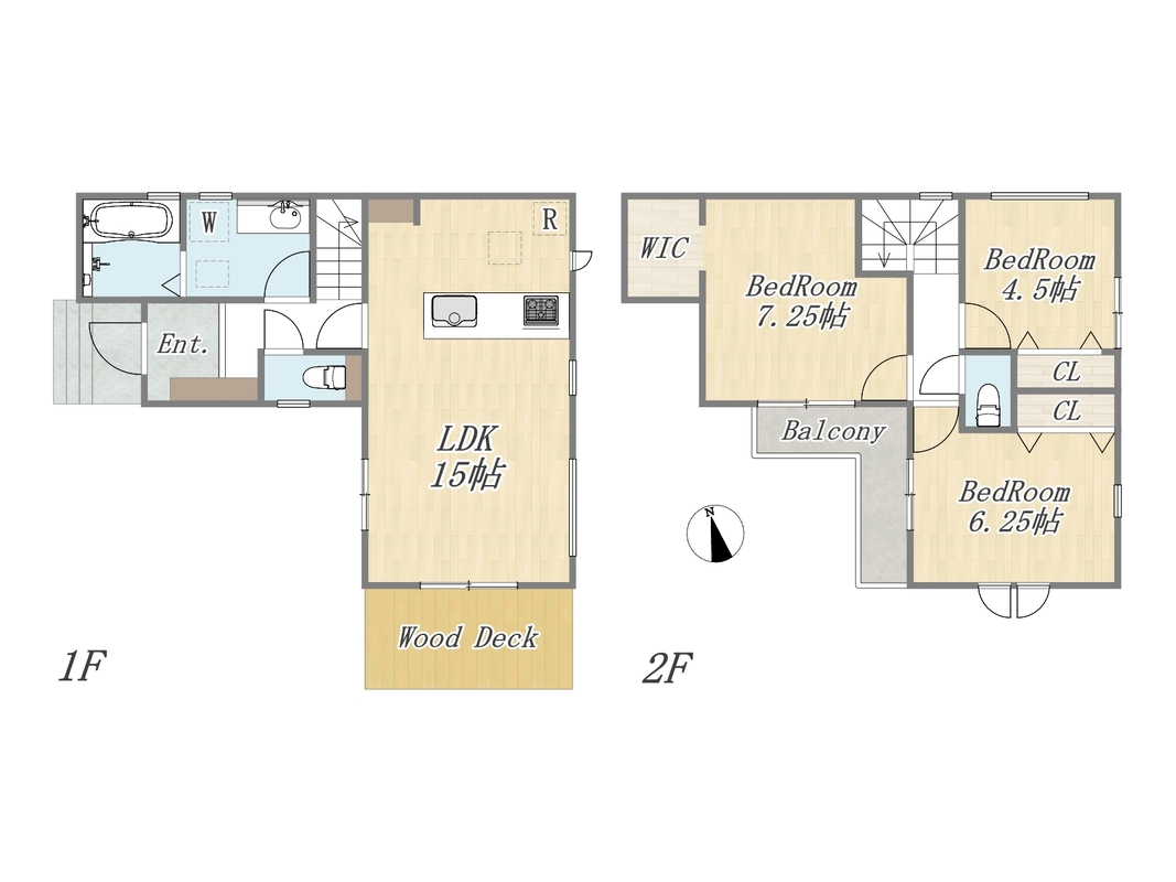 | 間取り | 3LDK+WIC+ウッドデッキ+カースペース2台 | 建物構造 | 木造2階建 |