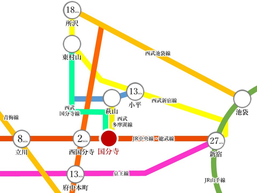 JR中央線「国分寺」駅 徒歩19分 JR中央線「国分寺」駅 バス乗車11分「新町三丁目」 徒歩3分 JR中央線「武蔵小金井」駅 徒歩30分 |