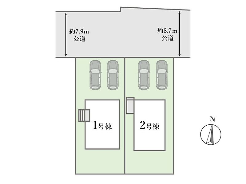 | 駐車場 | 1台 ~ 2台 | 道路の幅員 | 北側:約7.9m~約8.7m |