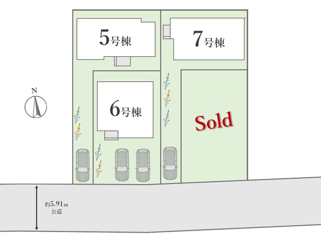 | 駐車場 | 1台 ~ 2台 | 道路の幅員 | 南側:約5.91m(公道) |