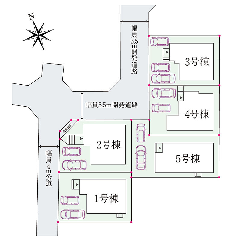 ・敷地面積37坪超。角地を含む全5棟の新たな街並み