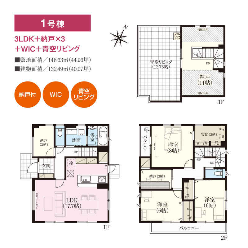 | 建物面積 | 132.49m2(40.07坪) | 土地面積 | 148.63m2(44.96坪) |