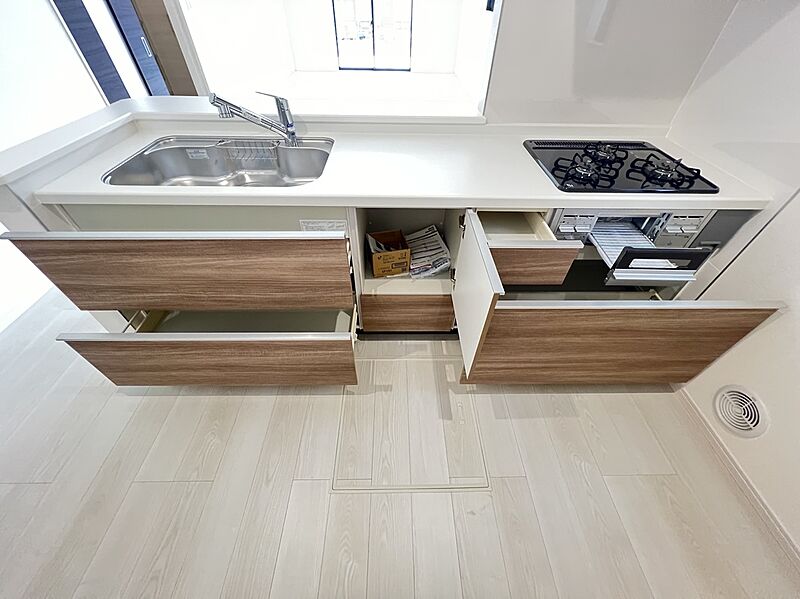 「広いキッチン」のメリットは何よりも「ゆとり」にあります。空間の広さが心身ともにゆとりを感じさせてくれるでしょう。