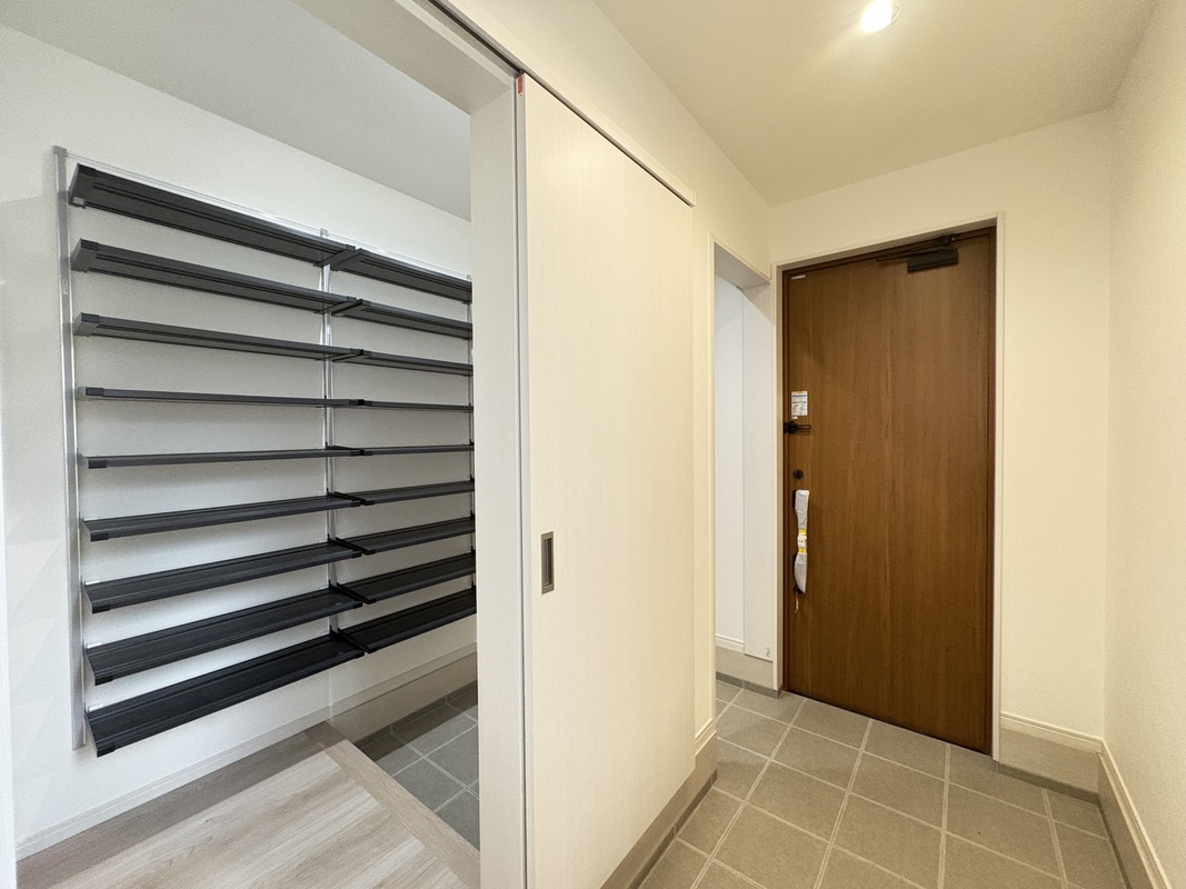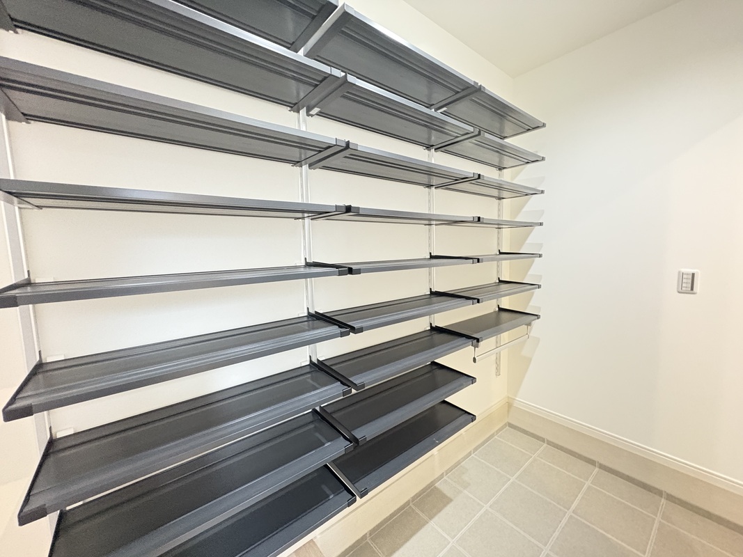 シューズクロークは、たくさんの靴はもちろん、コート・自転車・季節用品など、さまざまなアイテムを収納できる、魅力的な設備の一つです。通り抜けできるタイプのため、玄関からシューズクロークを通って室内に上がれます