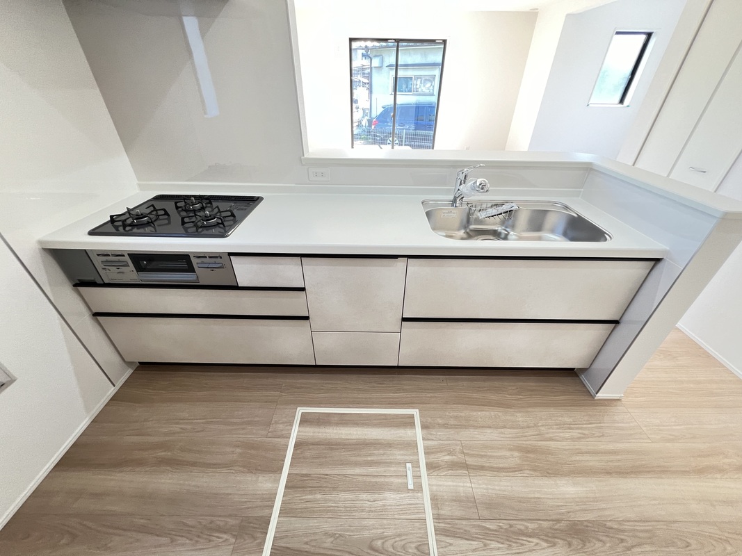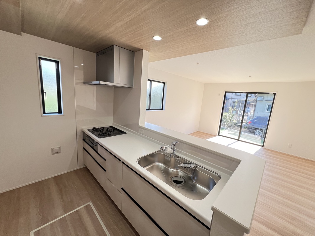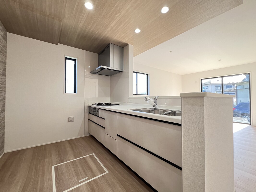 広いキッチンは開放感があり、複数人でキッチンに立っても動きやすくなります