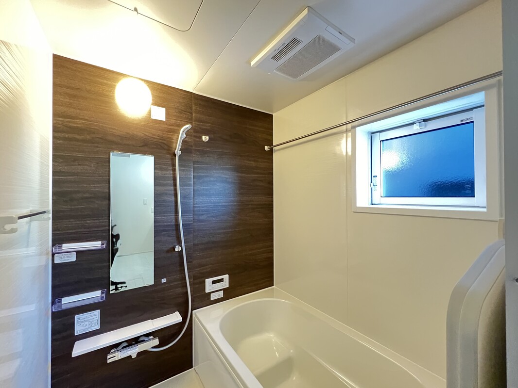 余裕のある洗面化粧台、シックなバスルーム、あると便利な手洗いなどが設置されてます