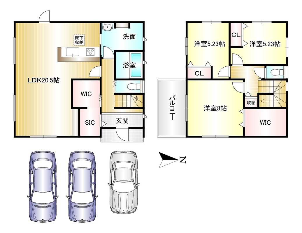 - ※完成予想図やCG合成画像は、門塀・植栽・庭・外観等、実際とは多少異なる場合があります。