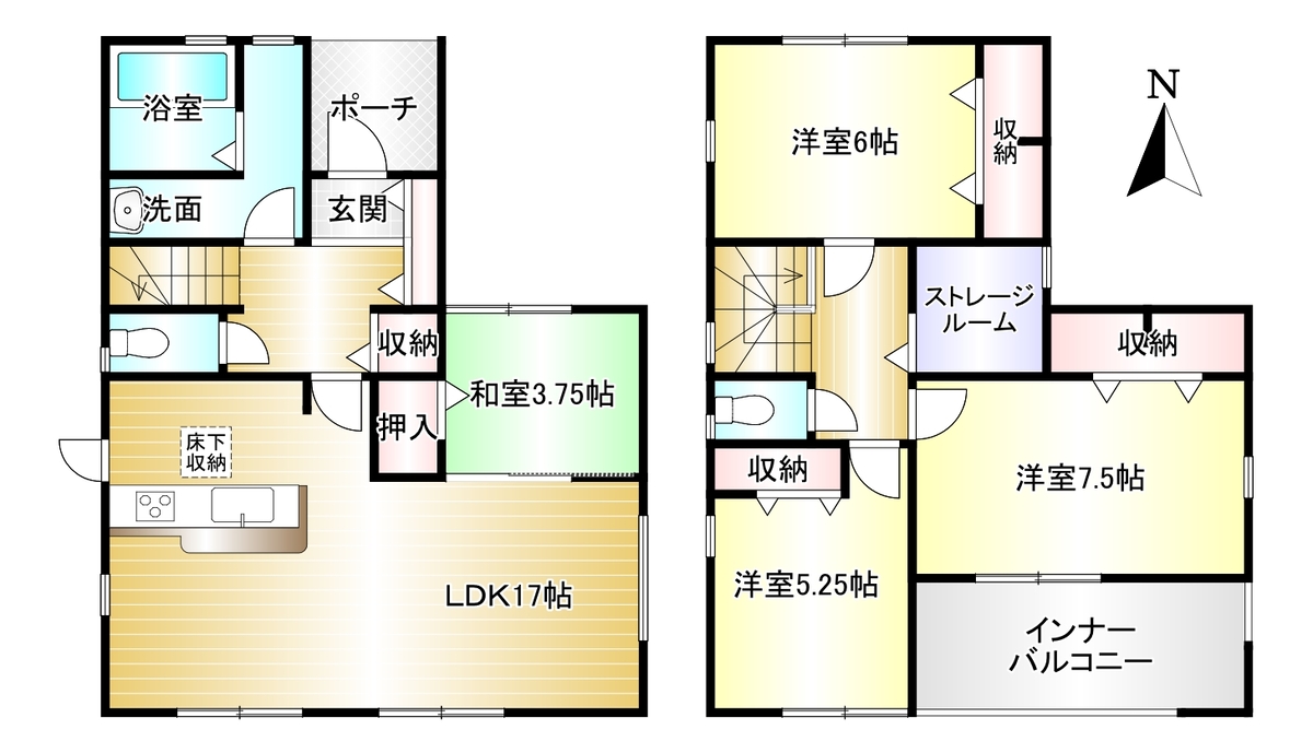 | 建物面積 | 2号棟:96.88m2 3号棟:105.99m2 4号棟:109.3m2 | 土地面積 | 2号棟:212.48m2 3号棟:212.47m2 4号棟:212.5m2 |