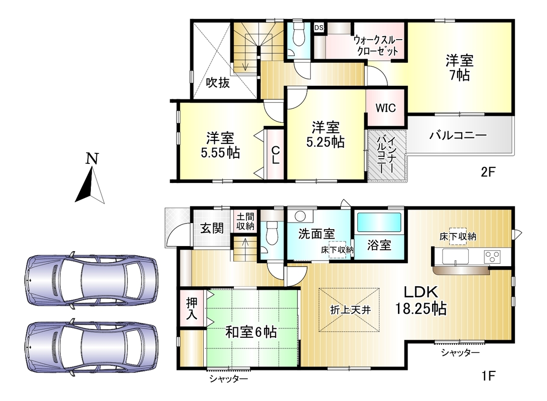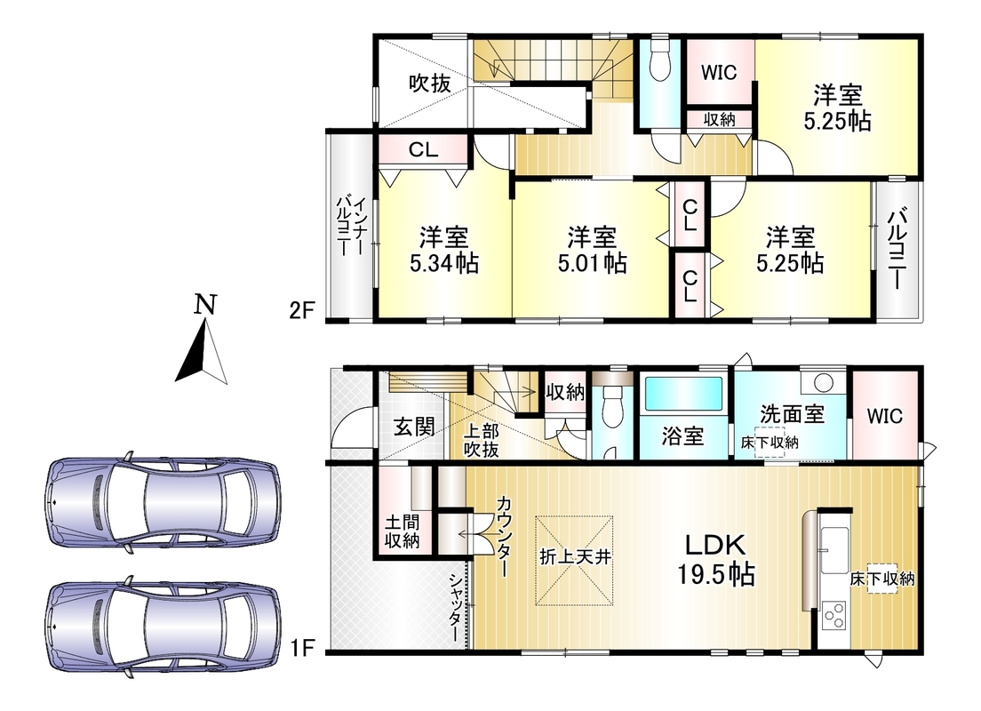 | 建物面積 | 1号棟106.55m2 2号棟109.18m2 | 土地面積 | 1号棟127.49m2 2号棟127.48m2 |