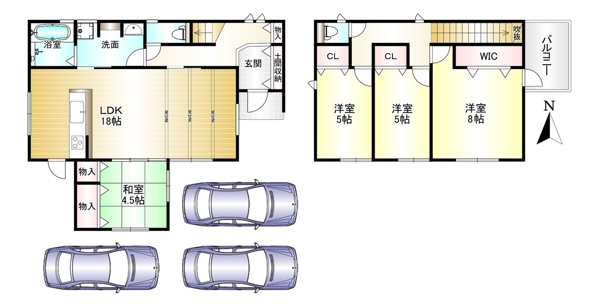 ●LDK18帖に和室4.5帖の広々スペース