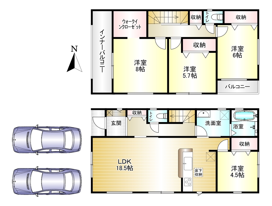- ※完成予想図やCG合成画像は、門塀・植栽・庭・外観等、実際とは多少異なる場合があります。