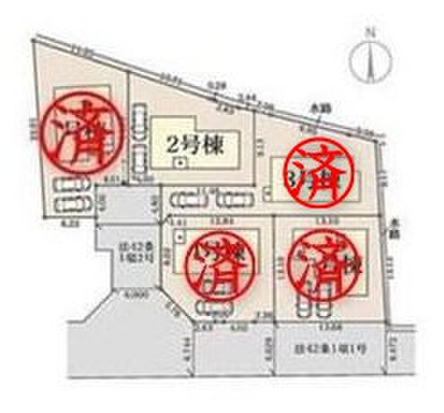 | 駐車場 | 2台 | 道路の幅員 | 道路幅:6m・6.6m、アスファルト舗装、南側6.6m公道、中央側6.0.m公道 |