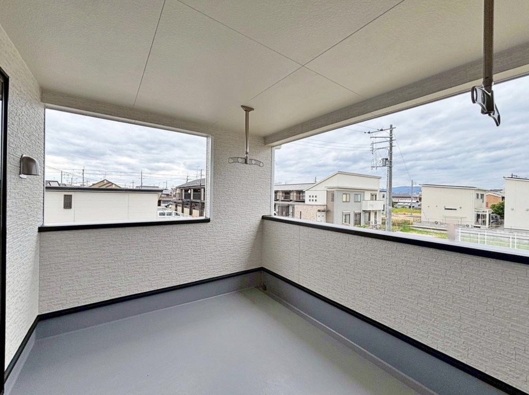 家族全員の布団や洗濯物も干せる、ストレスのない広さとなっております。また、イスやテーブルを置いてセカンドリビングのように、食事や食後のくつろぎの時間を楽しむこともできます♪