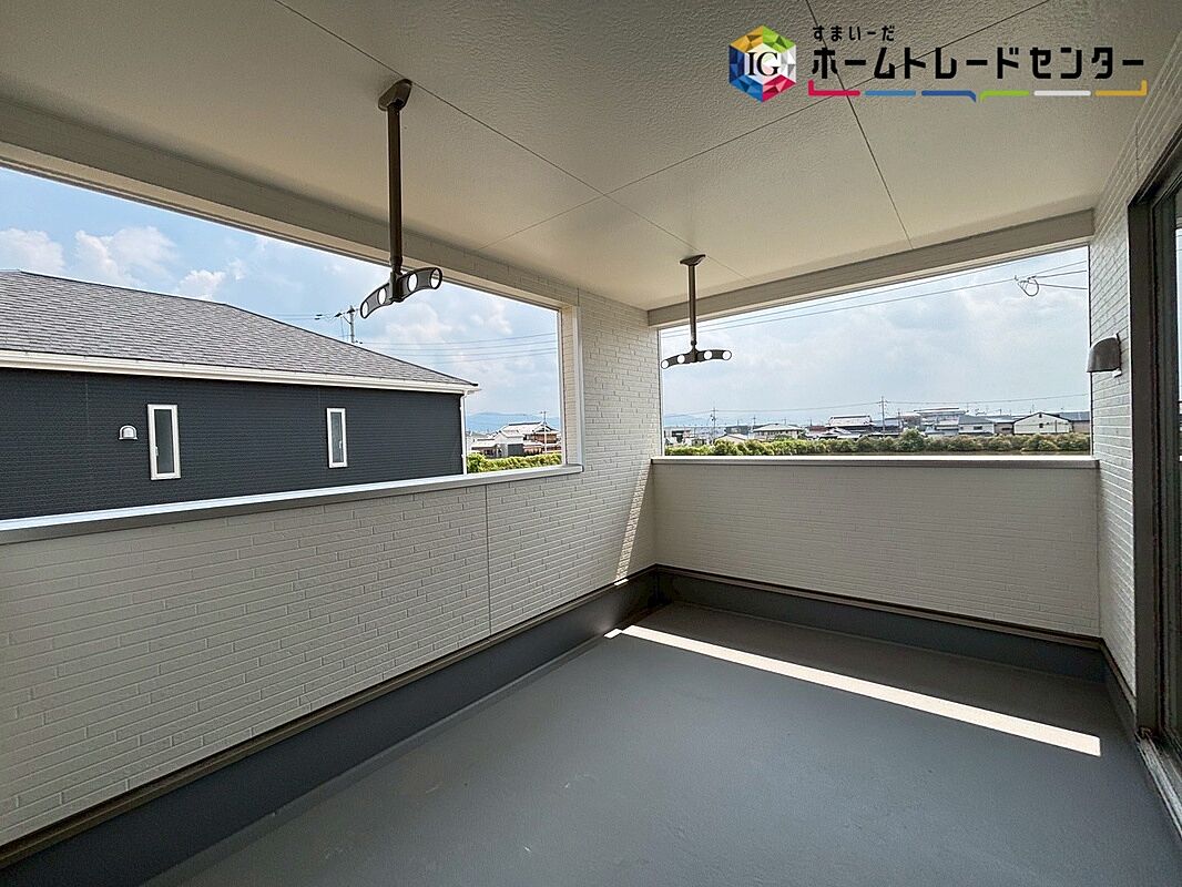 〇家族全員の布団や洗濯物も干せる、ストレスのない広さのワイドバルコニー。