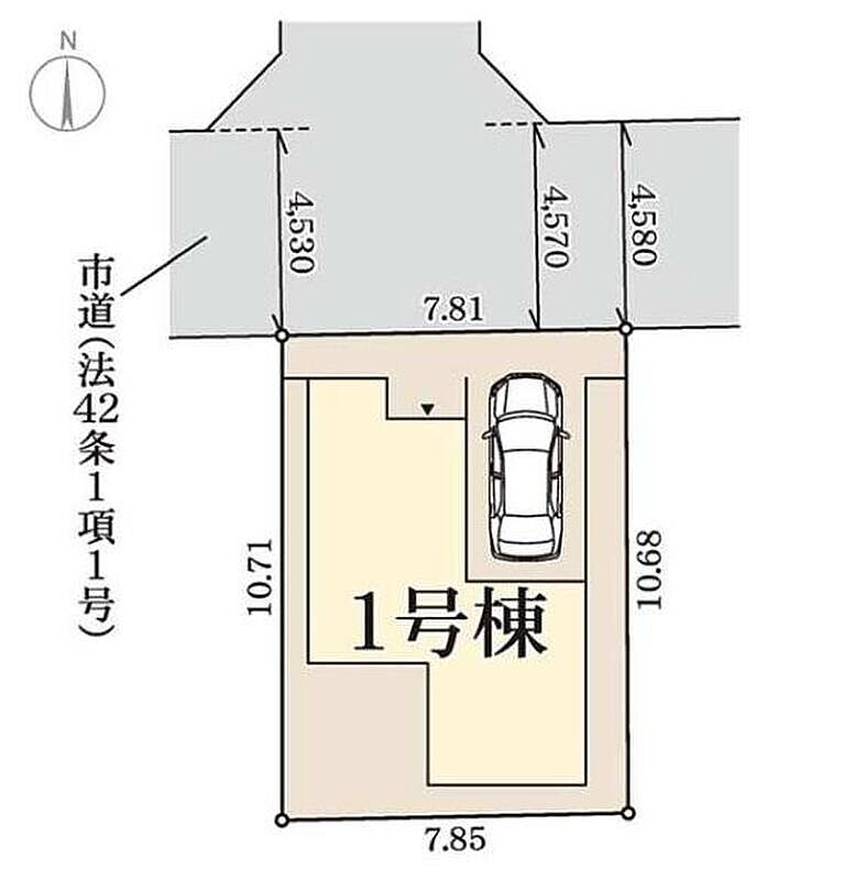 | 駐車場 | 1台 | 道路の幅員 | 道路幅:4.5m、アスファルト舗装、北側4.54m公道 |