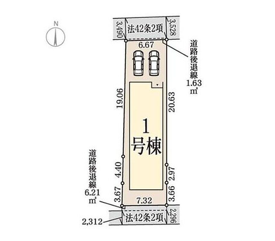 | 駐車場 | 2台 | 道路の幅員 | 道路幅:2m~3.6m、アスファルト舗装、北側3.6m公道、南側2m公道 |