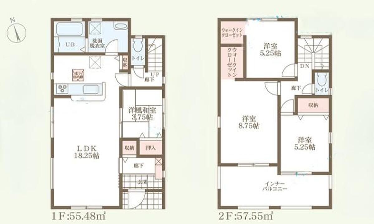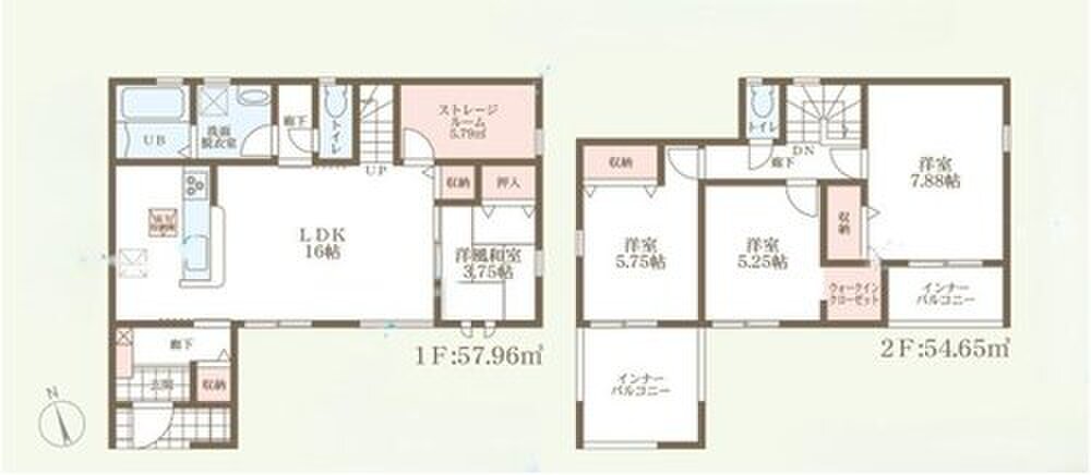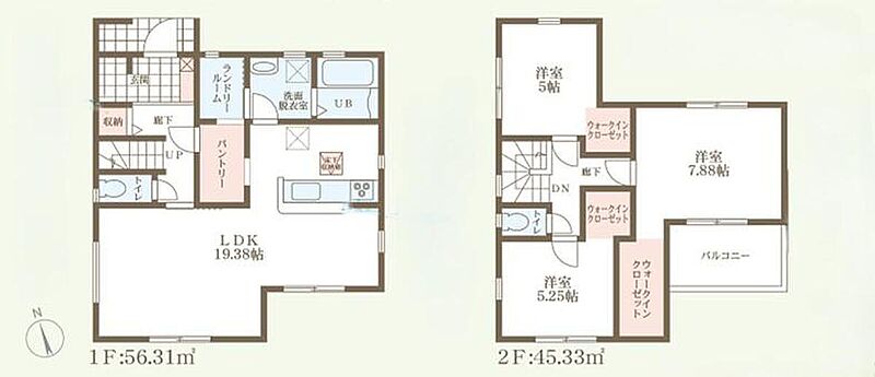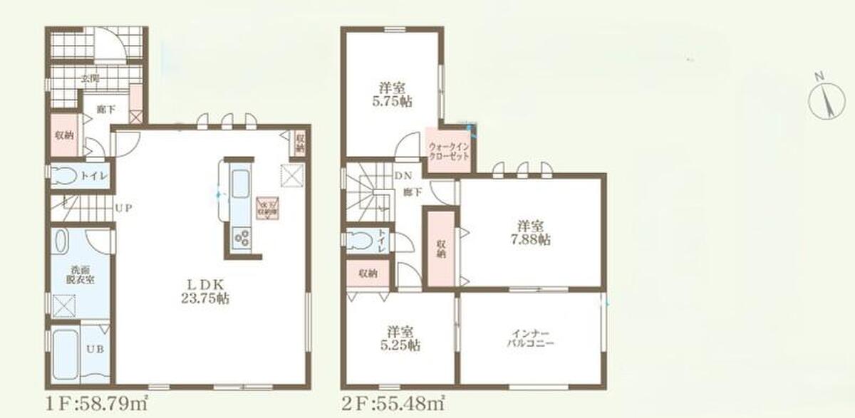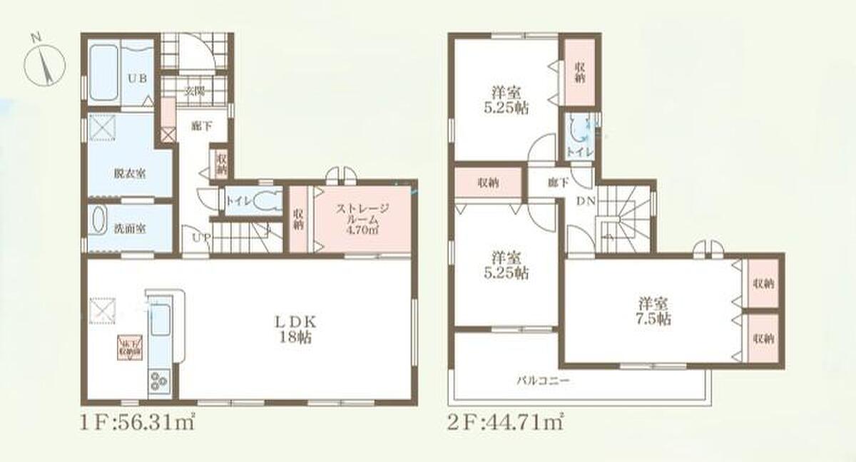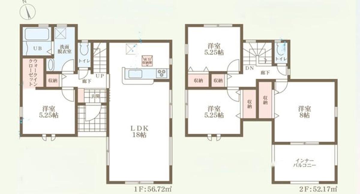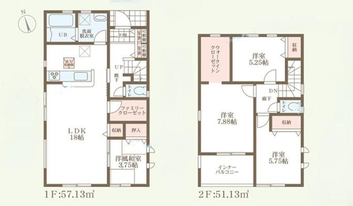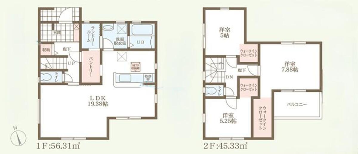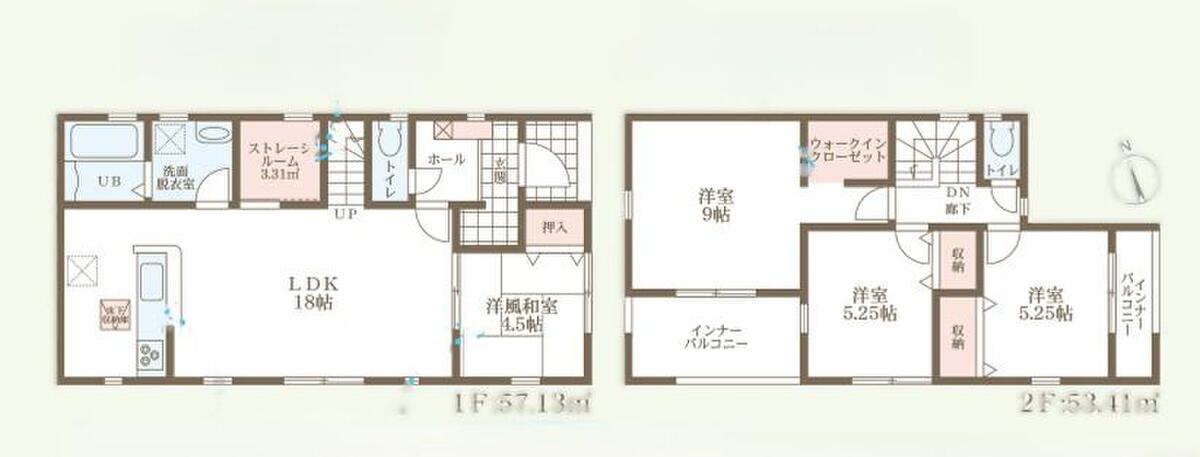 2号棟 間取り 4LDK 価格 2680万円 建物面積 107.64m2 土地面積 131.91m2 -