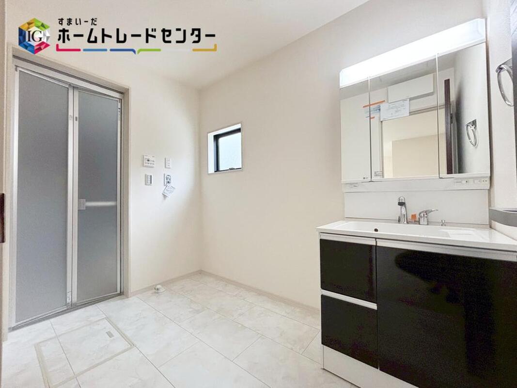 白を基調とした爽やかなサニタリースペース。毎日の身支度も気持ち良くお使い頂けます。鏡の裏にも収納がございますので、歯ブラシや化粧品などの小物類もすっきり収納できます♪