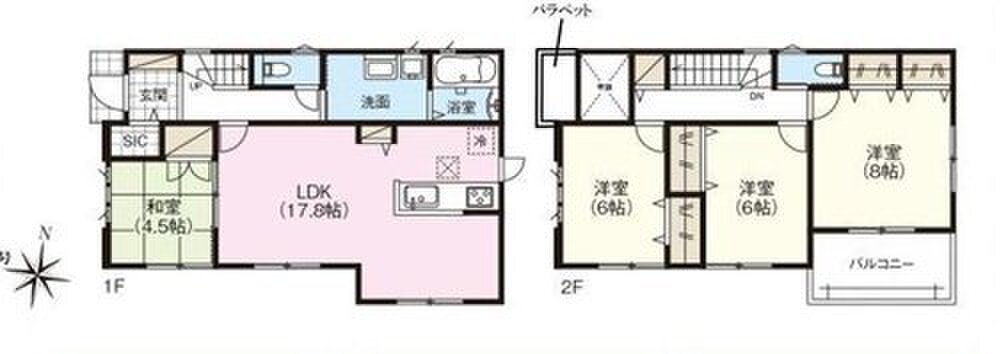1号棟 間取り 4LDK 価格 2990万円 建物面積 102.06m2 土地面積 200.74m2 -