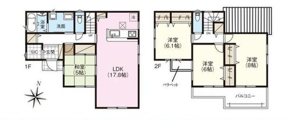 5号棟 間取り 4LDK 価格 3050万円 建物面積 102.06m2 土地面積 200.65m2 -