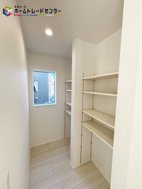 キッチンスペース横にはパントリーを設けております。調味料や備蓄品の収納などあると便利なパントリールームです♪