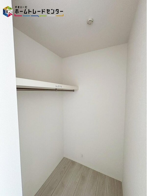 コートハンガー付きのウォークインクローゼット。洋服タンスをしまえるくらいの大きさなので、すっきりとした室内に。