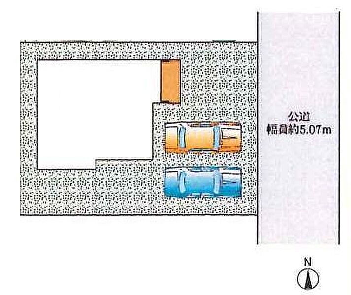 | 駐車場 | 2台(※車種による) | 道路の幅員 | 道路幅:5m、アスファルト舗装、東側5.07m公道 |