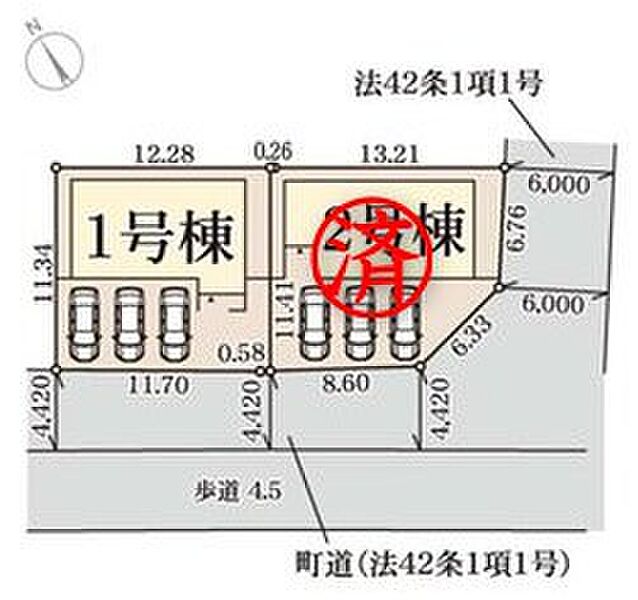 | 駐車場 | 3台 | 道路の幅員 | 道路幅:4.4m、アスファルト舗装、南側4.4m公道、南東側6m公道 |