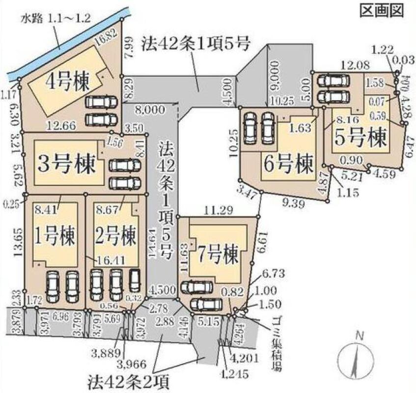| 駐車場 | 2台 ~ 3台(2台(1・3・4・5・6・7号棟)、3台(2号棟)) | 道路の幅員 | 道路幅:3.8m~4.5m、アスファルト舗装 |