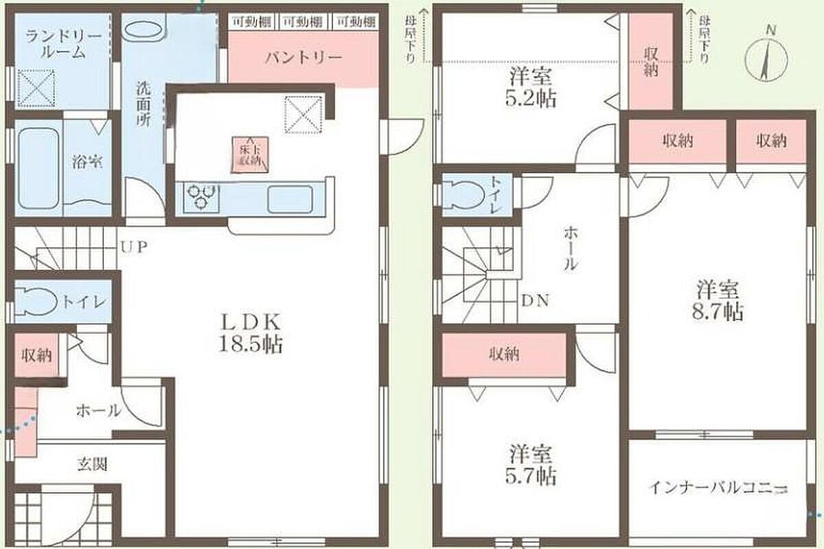 | 間取り | 3LDK・5LDK | 建物構造 | 木造在来軸組工法1-2階建(900モジュール) |